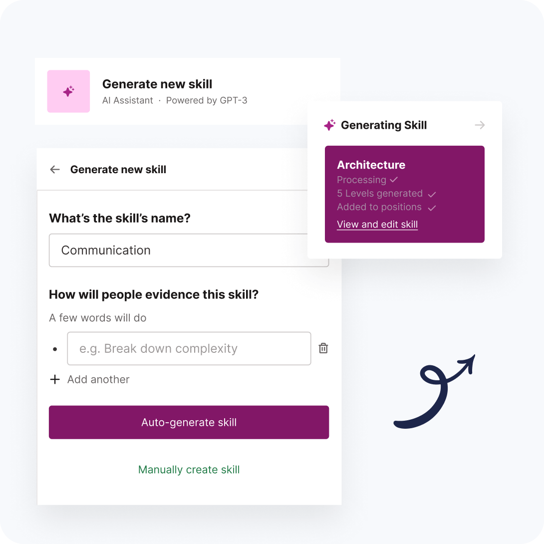 The AI assistant generates skill descriptions and levels instantly. No need to start from scratch.