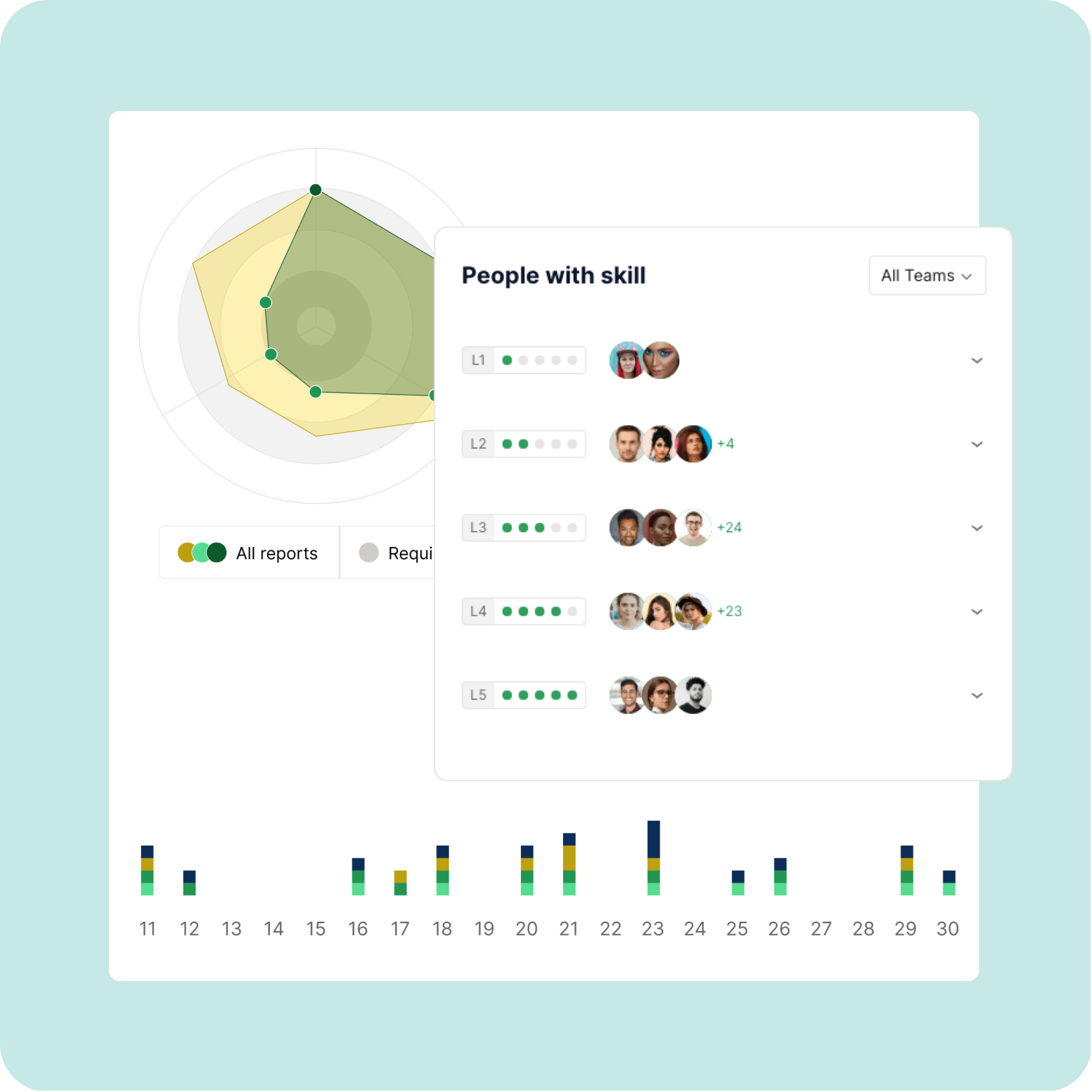 Clear pathways show people how to grow. On average, our customers see a 45% increase in annual skill growth.